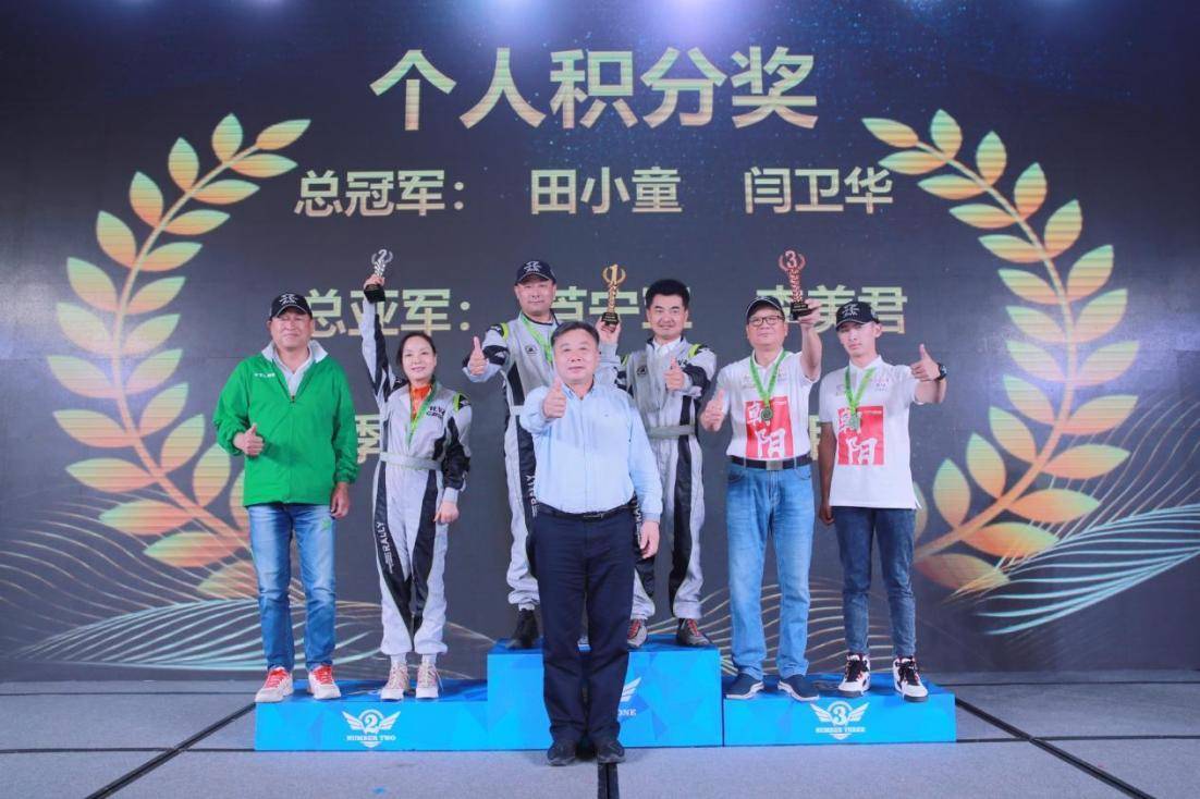 湖南省赛车运动协会主席潘绍钦为个人积分奖获奖选手颁奖 总冠军:田小童/闫卫华 总亚军:芦宁军/李美君 总季军:孙玉卿/宋自远